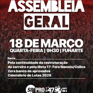 Magistério faz assembleia com paralisação dia 18/3