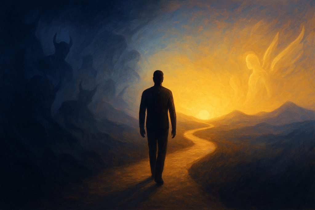 Cada um carrega dentro de si anjos (sua parte de luz) e demônios (suas sombras). Você está aqui para educar e transformar seus demônios (sombras)
