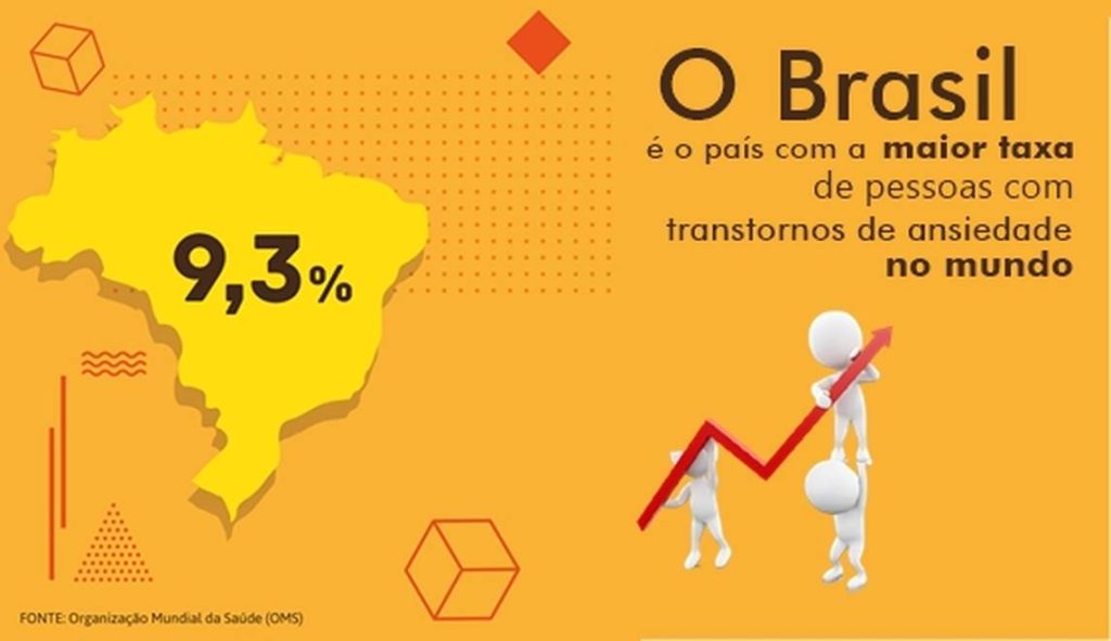 Pesquisa realizada pela Universidade Federal do Rio Grande do Sul (UFRGS) mostra que, na pandemia, a taxa de ansiedade entre os brasileiros chegou a 80%. De acordo com OMS, 19 milhões de brasileiros têm algum tipo de transtorno de ansiedade. Os mais comuns são: fobias, transtorno de ansiedade generalizado, transtorno de estresse pós-traumático, síndrome do pânico e transtorno obsessivo compulsivo.
