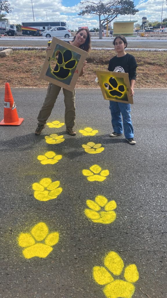 Para jogar luz sobre essa realidade e alertar os milhares de motociclistas participantes do Capital Moto Week, servidores, brigadistas do ICMBio, moradores e membros da ONG Patrulha Ecológica pintaram faixas de patadestre na via de acesso à Granja do Torto, onde acontece o evento.