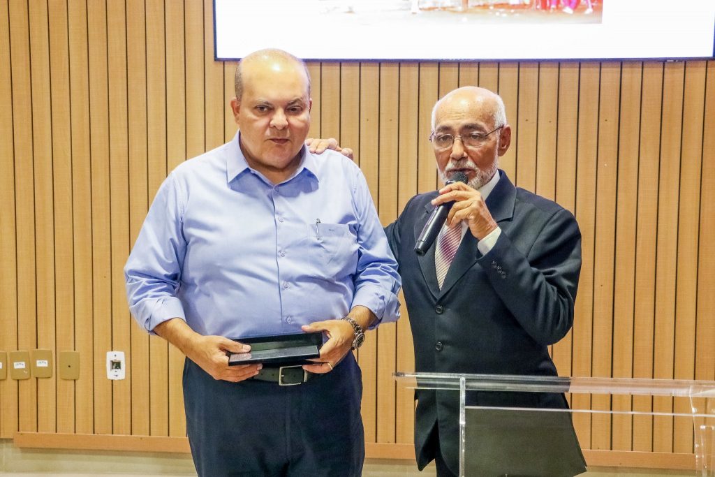 Justo Magalhães entrega placa a Ibaneis Rocha. Foto: Renato Alves/Agência Brasília