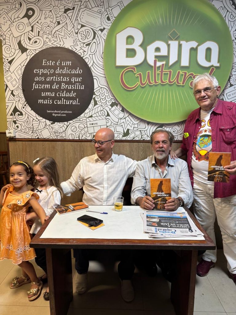 O poeta mineiro Josafá Santana, assessor de gabinete do deputado Reginaldo Veras (PV-DF), lançou, segunda-feira (1º), no Beirute da 109 Sul, o livro “Animal Poético”. A obra apresenta versos que exploram a condição humana, suas indagações e sensibilidade diante da realidade. O evento reuniu familiares, incluindo as netas Liz e Teresa, e autoridades como o presidente do PV-DF, Eduardo Brandão e o histórico militante do PSB, Acilino Ribeiro.