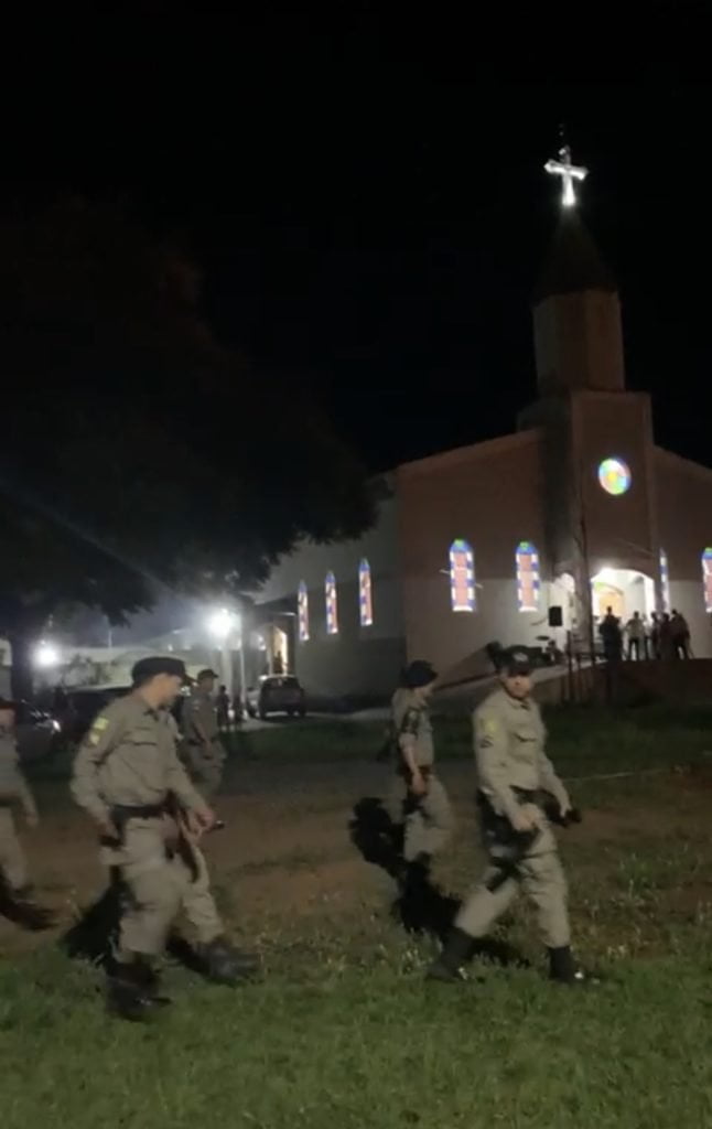 Os militares cumpriam ordens de evitar qualquer barulho que pudesse perturbar a celebração de uma missa de desagravo ao pároco Cleyton Garcia, com a participação de mais dois padres – Allan Carlos e Israel Adriano, da Paróquia Imaculado Coração de Maria, de Alexânia – e um diácono (Francisco)