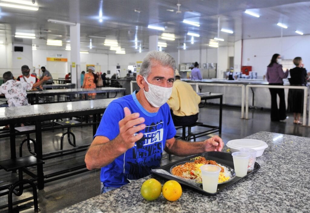 “Comer aqui é melhor, ainda está quentinha. A comida é gostosa, baratinha, ajuda muito a gente, mas tem que ter segurança para ninguém ficar doente”, afirma João Alvacir, desempregado há quatro anos. Ele aproveita os cardápios ao custo de R$ 1 há quase duas décadas. Desde março, só podia pegar marmitas e levar para casa. Agora, além de almoçar no buffet do restaurante, também pode carregar porções. Isso porque a prática de distribuir as refeições será mantida para quem preferir – em número ilimitado.